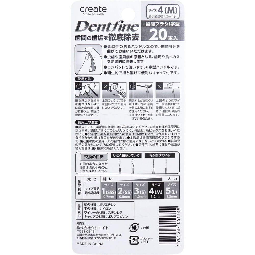 クリエイト デントファイン 歯間ブラシI字型 サイズ4(M) 20本入 1パック(ご注文単位1パック)【直送品】