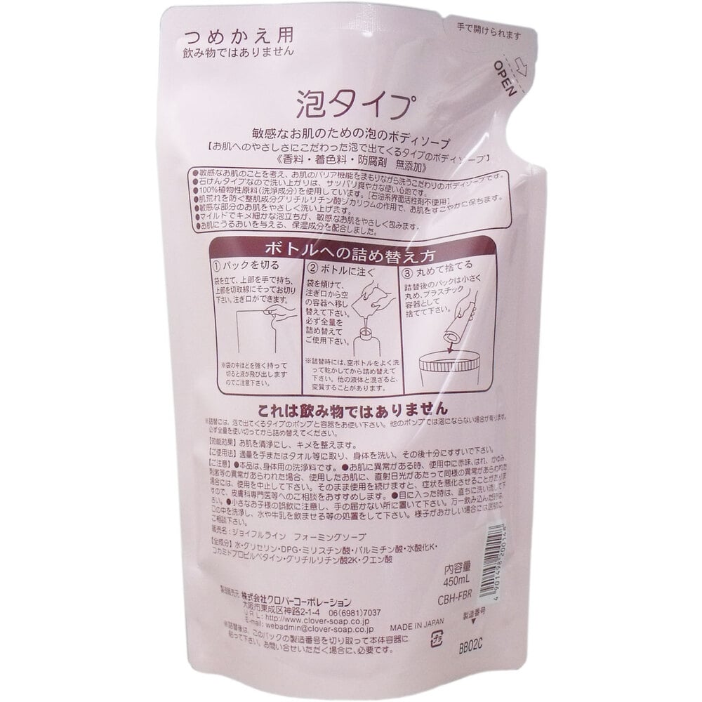 クロバーコーポレーション 敏感なお肌のための 泡のボディソープ 詰替用 450mL 1個(ご注文単位1個)【直送品】