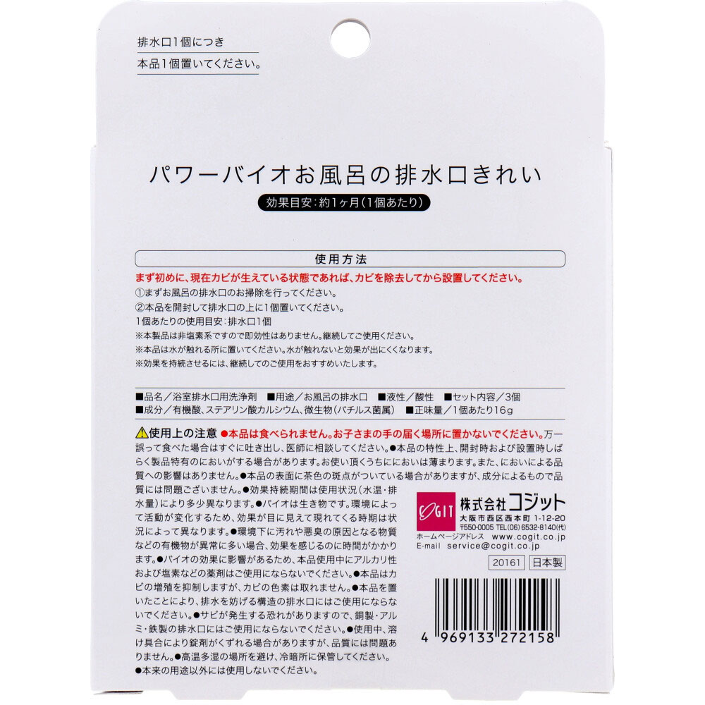コジット パワーバイオ お風呂の排水口きれい 塩素不使用 3個入 1箱(ご注文単位1箱)【直送品】