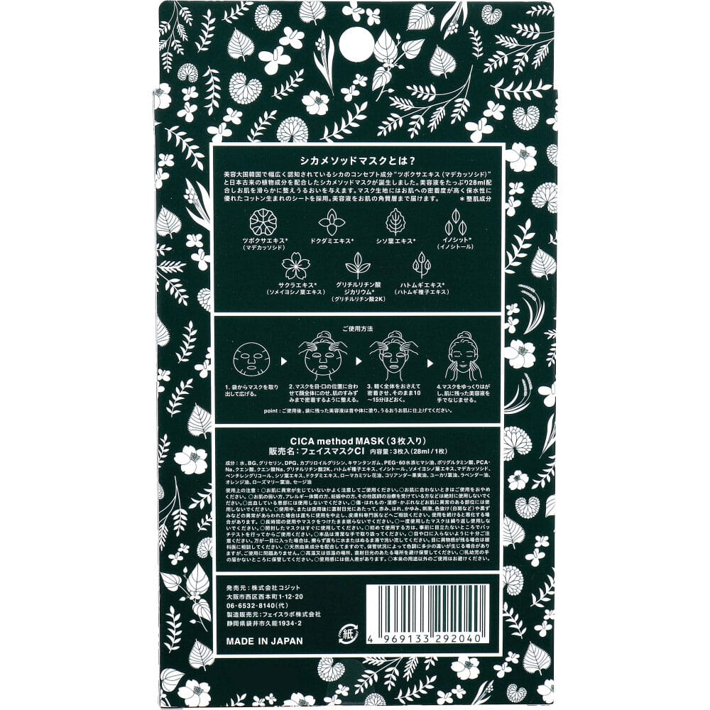 コジット CICA method MASK シカ メソッド フェイスマスク 3枚入 1パック(ご注文単位1パック)【直送品】