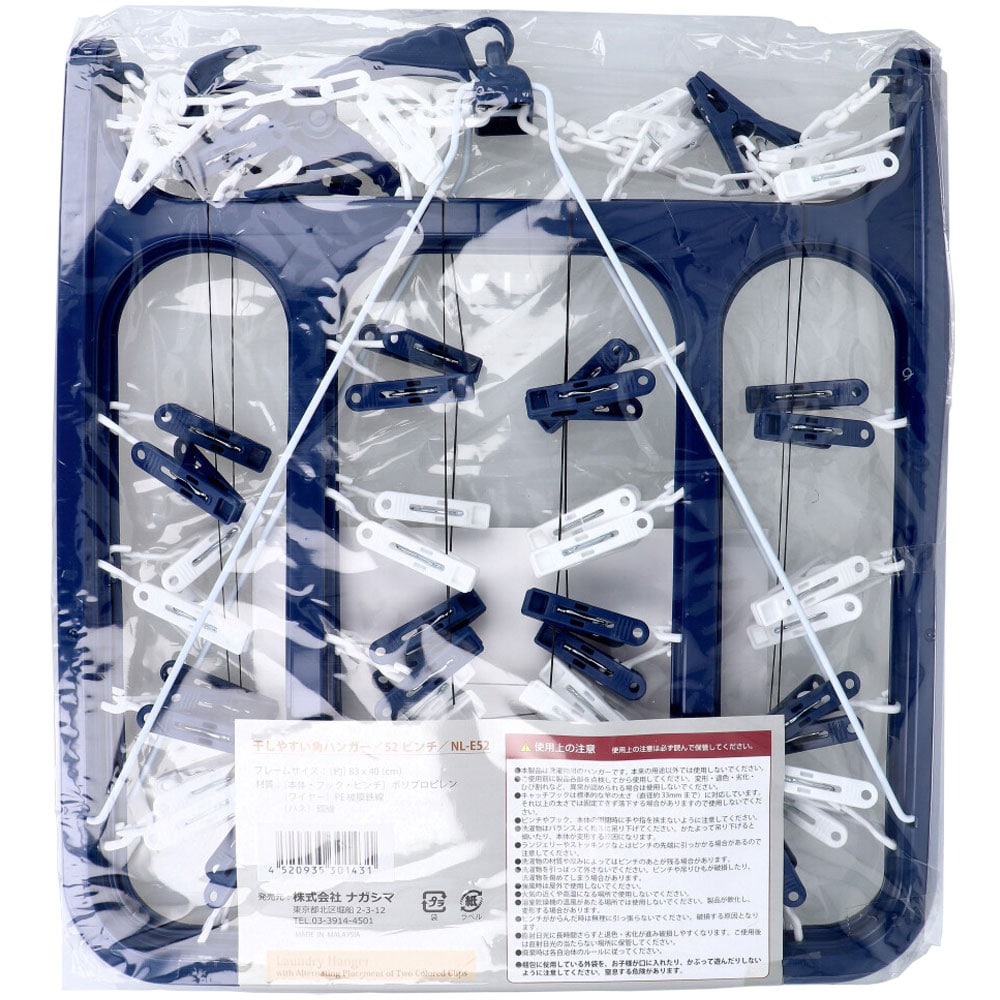 ナガシマ 干しやすい角ハンガー 52ピンチ NL-E52 1個(ご注文単位1個)【直送品】