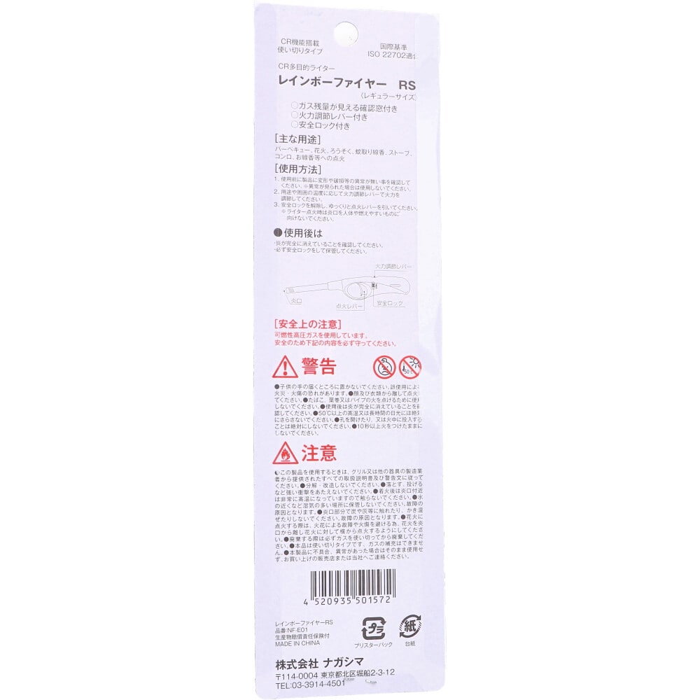 ナガシマ CR機能搭載 使い切りタイプ 多目的ライター レインボーファイヤー RS レギュラーサイズ 1個入 1パック(ご注文単位1パック)【直送品】