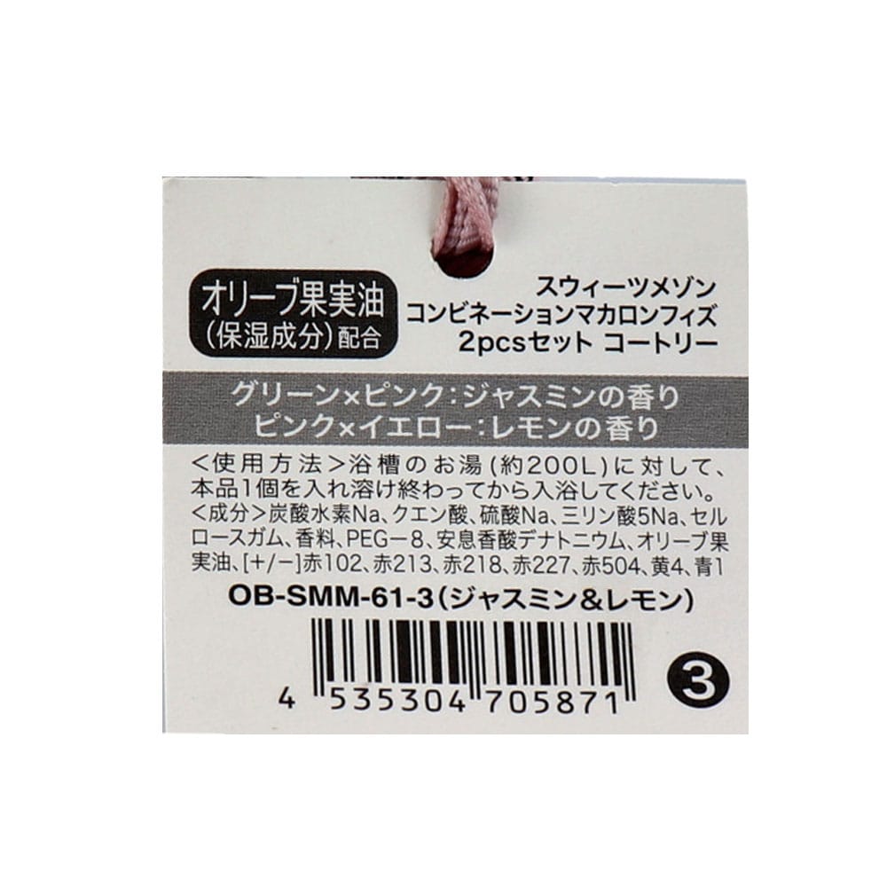 ノルコーポレーション スウィーツメゾン コンビネーションマカロンフィズ 2pcs コートゥリー ジャスミン&レモンの香り 2回分 1袋(ご注文単位1袋)【直送品】
