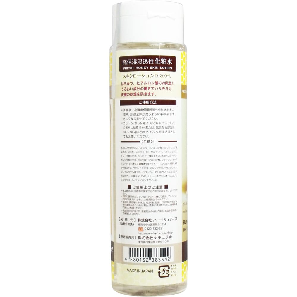 ハーベリィアース ハニースキンローションD 生はちみつ化粧水 300mL 1個(ご注文単位1個)【直送品】