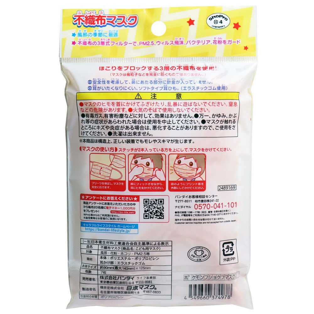 バンダイ こども不織布マスク ポケットモンスター 7枚入 1袋(ご注文単位1袋)【直送品】
