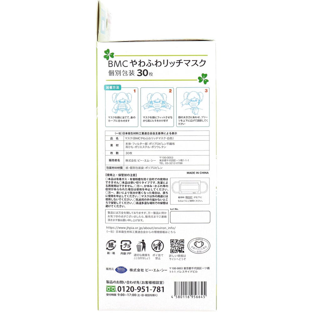ビー・エム・シー BMC やわふわリッチマスク 幼児・小学校低学年向け 個別包装タイプ キッズサイズ 30枚入 1箱(ご注文単位1箱)【直送品】