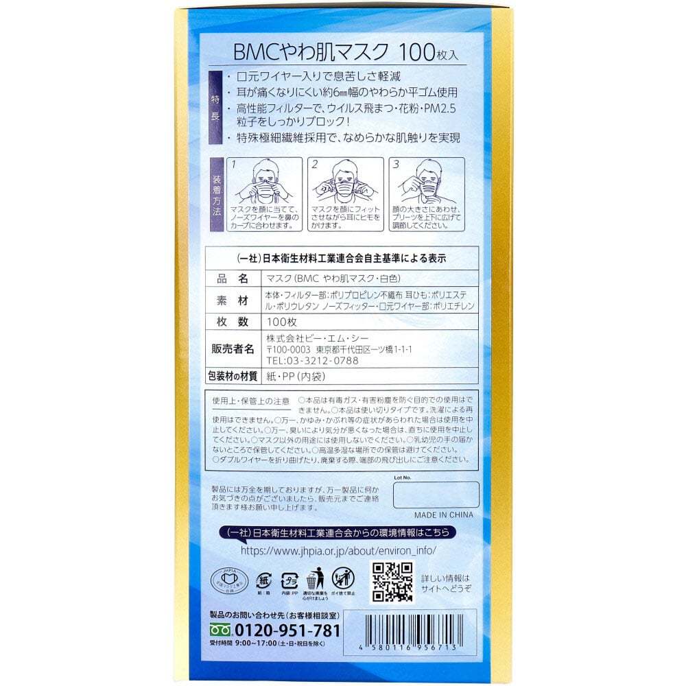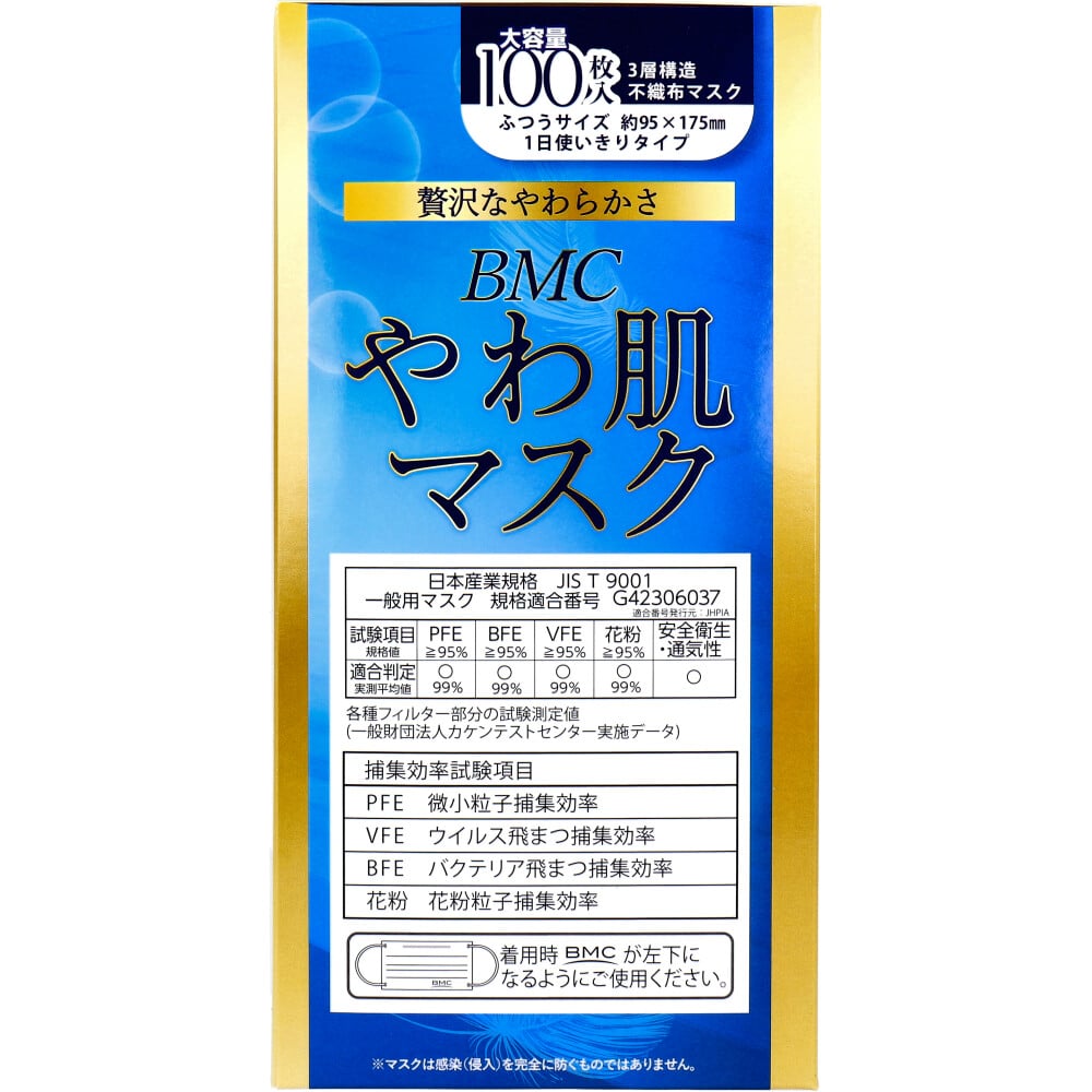 ビー・エム・シー BMC やわ肌マスク 1日使いきりタイプ ふつうサイズ 大容量 100枚入 1箱(ご注文単位1箱)【直送品】