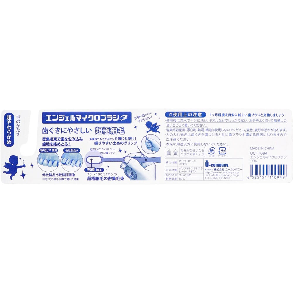 ユーカンパニー エンジェルマイクロブラシ 超極細毛 超やわらかめ ブルー 1本(ご注文単位1本)【直送品】