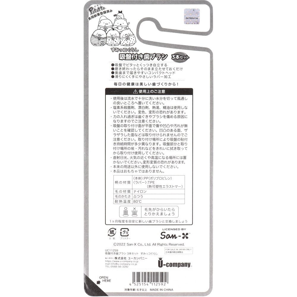 ユーカンパニー ピタット すみっコぐらし 吸盤付き歯ブラシ 3本 1セット(ご注文単位1セット)【直送品】