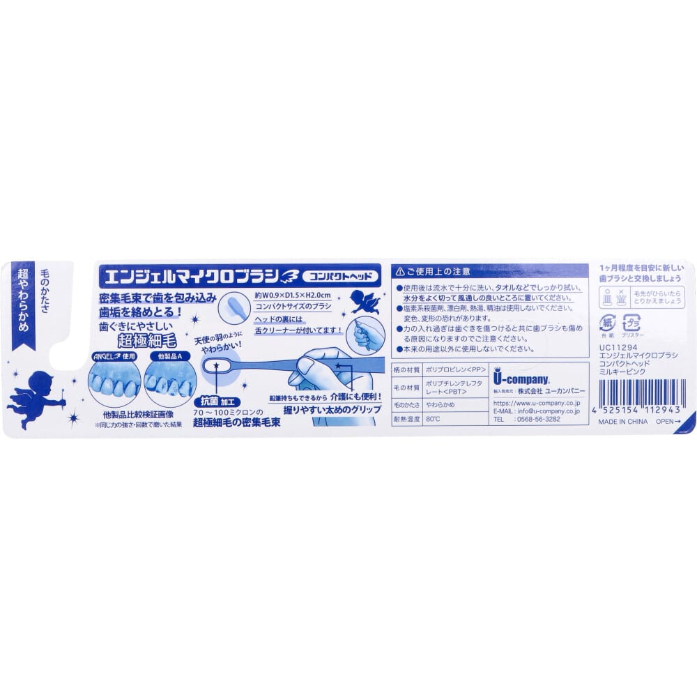 ユーカンパニー エンジェルマイクロブラシ コンパクトヘッド 超極細毛 ミルキーピンク 超やわらかめ 1本(ご注文単位1本)【直送品】
