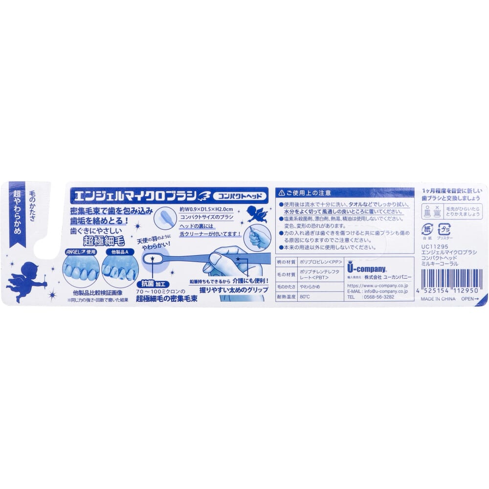 ユーカンパニー エンジェルマイクロブラシ コンパクトヘッド 超極細毛 ミルキーコーラル 超やわらかめ 1本(ご注文単位1本)【直送品】