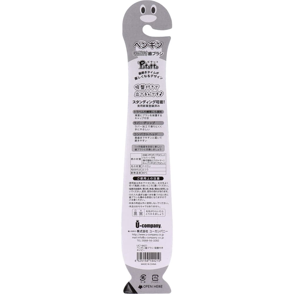 ユーカンパニー ピタット ペンギン歯ブラシ 吸盤&キャップ付 ネイビー 1本(ご注文単位1本)【直送品】