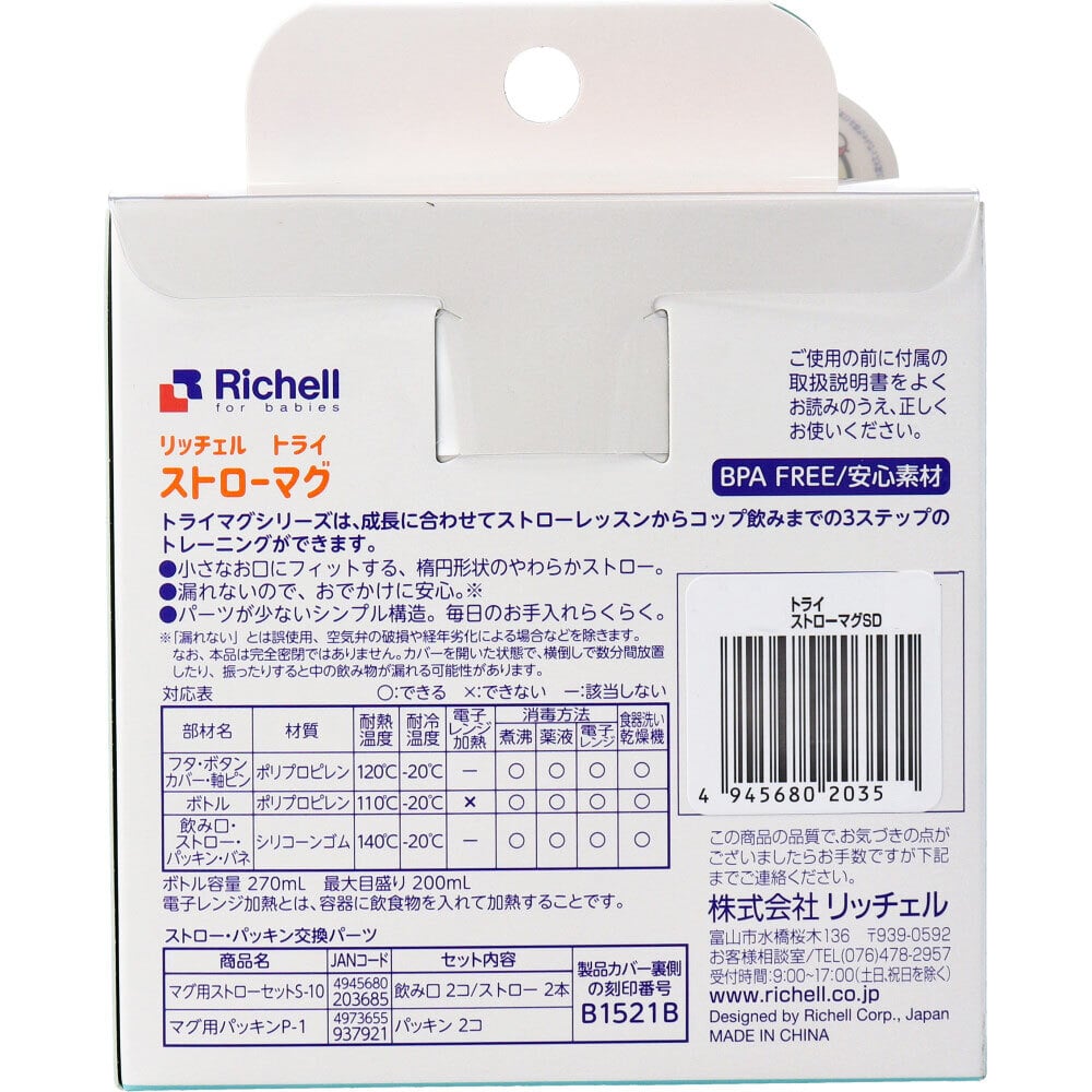 リッチェル トライ ストローマグSD イエロー 1個(ご注文単位1個)【直送品】