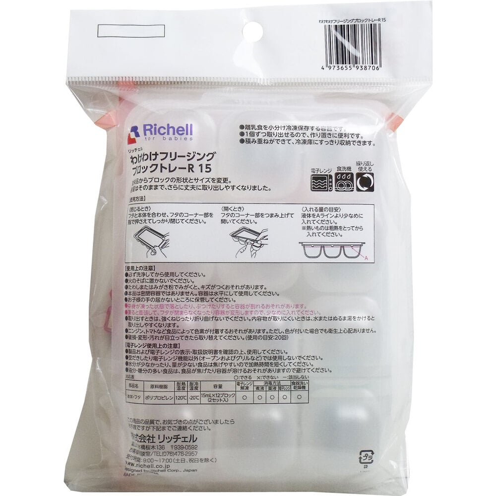 リッチェル わけわけフリージングブロックトレー 15mL×12ブロック 2セット入 1パック(ご注文単位1パック)【直送品】
