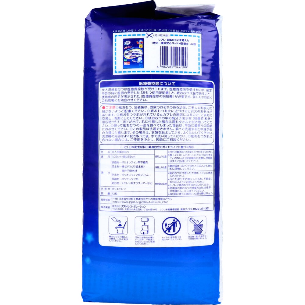 リブドゥコーポレーション リフレ お肌のことを考えた1枚で一晩中安心パッド 4回吸収 男女兼用 42枚入 1パック(ご注文単位1パック)【直送品】