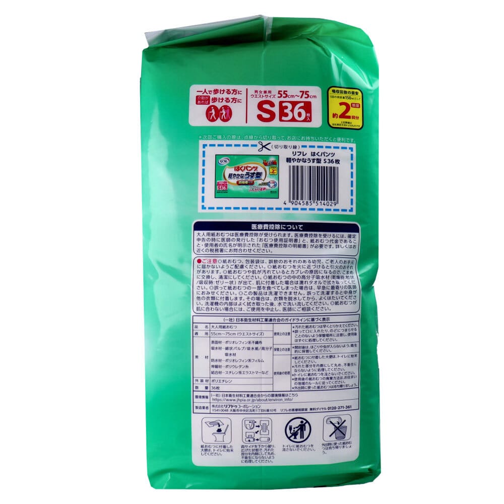リブドゥコーポレーション リフレ はくパンツ 軽やかなうす型 お得用パック Sサイズ 36枚入 1パック(ご注文単位1パック)【直送品】