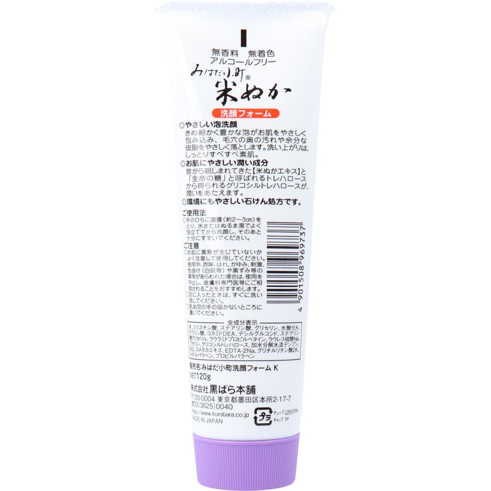 黒ばら本舗 みはだ小町 米ぬか洗顔フォーム 120g 1個(ご注文単位1個)【直送品】