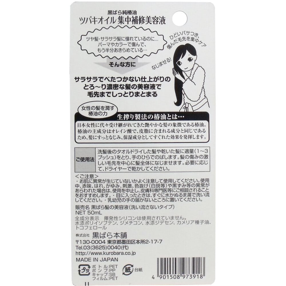 黒ばら本舗 ツバキオイル 集中補修美容液 50mL 1個(ご注文単位1個)【直送品】