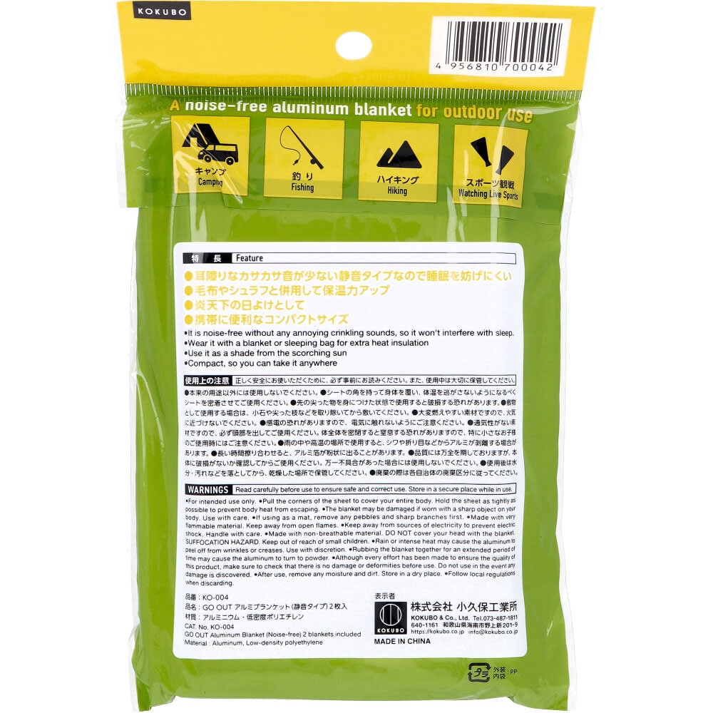 小久保工業所 GO OUT アルミブランケット 静音タイプ 一人用サイズ 2枚入 1パック(ご注文単位1パック)【直送品】