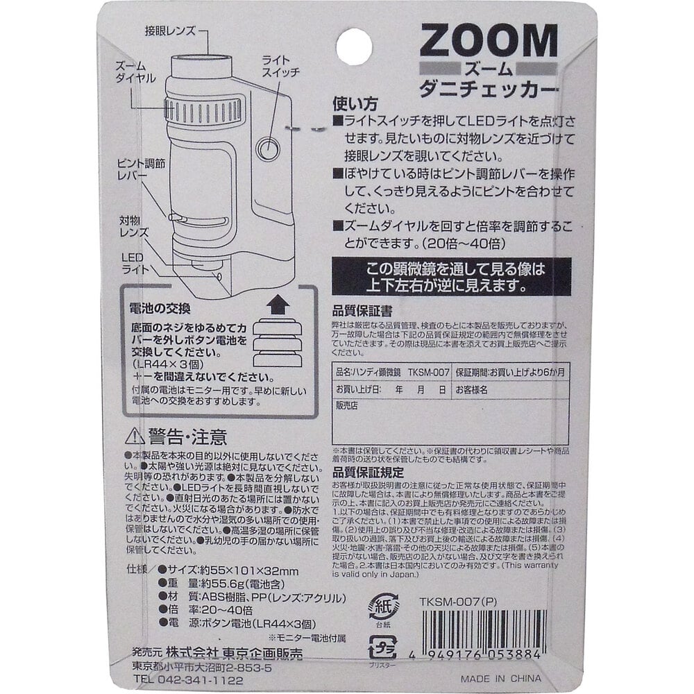 東京企画販売 ZOOMダニチェッカー (ハンディ顕微鏡) ピンク TKSM-007-P 1個(ご注文単位1個)【直送品】