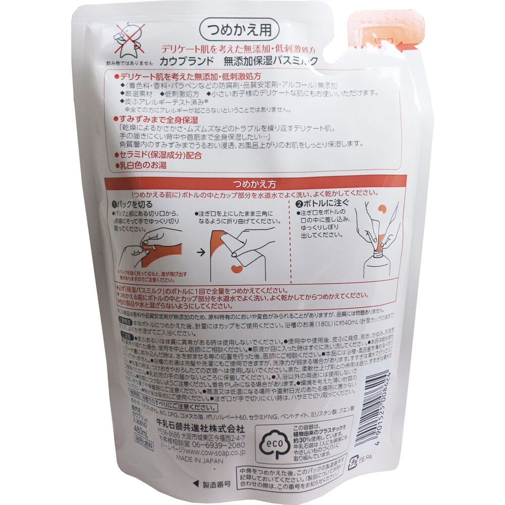 牛乳石鹸共進社 カウブランド 無添加保湿 バスミルク 入浴液 詰替用 480mL 1個(ご注文単位1個)【直送品】