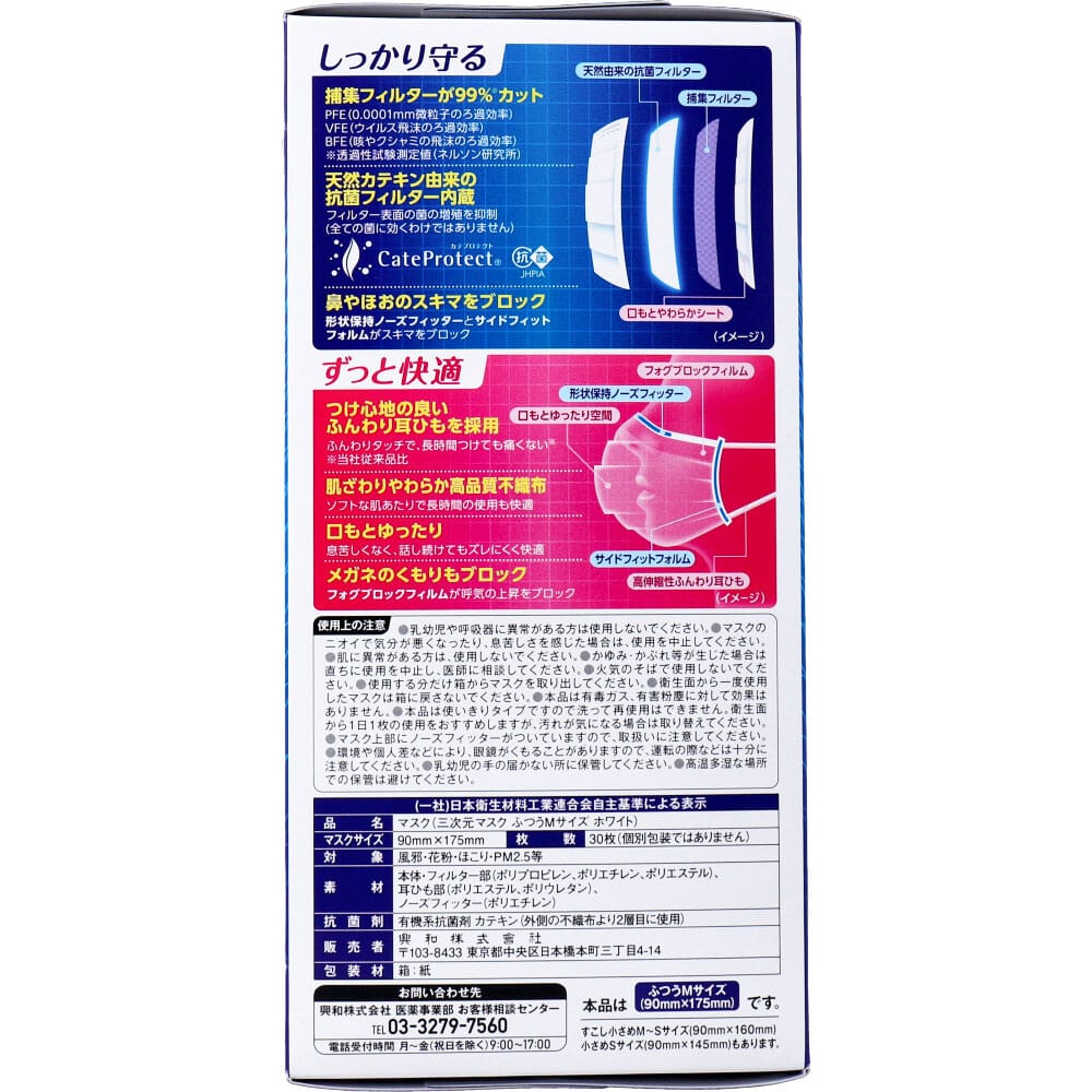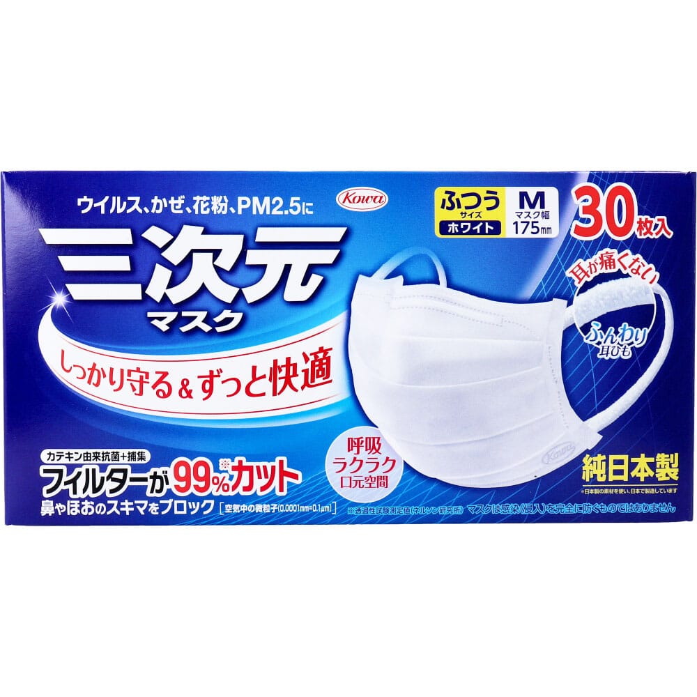 興和 三次元マスク ふつうMサイズ ホワイト 30枚入 1箱(ご注文単位1箱)【直送品】