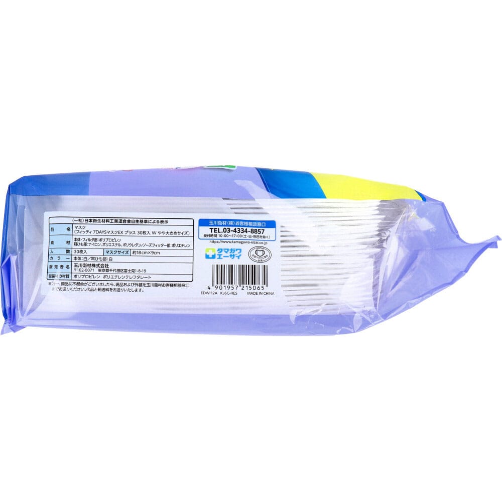 玉川衛材 フィッティ 7DAYSマスクEX プラス ホワイト やや大きめサイズ 個別包装 30枚入 1箱(ご注文単位1箱)【直送品】