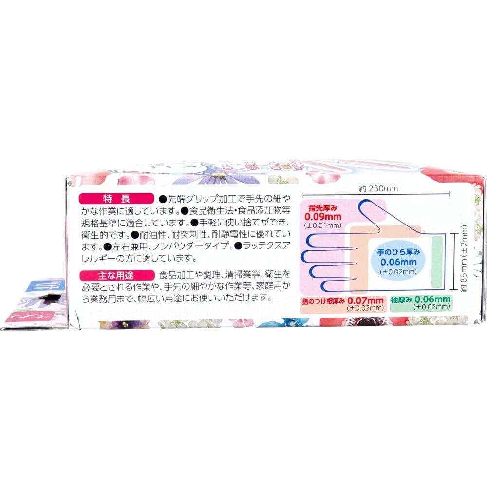 掌まわり:190±20mm/中指の長さ:85±10mm/全長:230mm