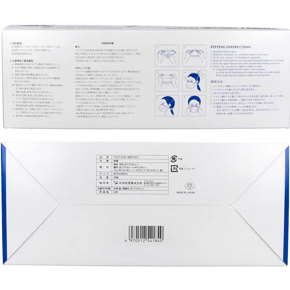 小津産業 ゼスト N95マスク 個包装 ホワイト OZ01-11 30枚 1箱(ご注文単位1箱)【直送品】