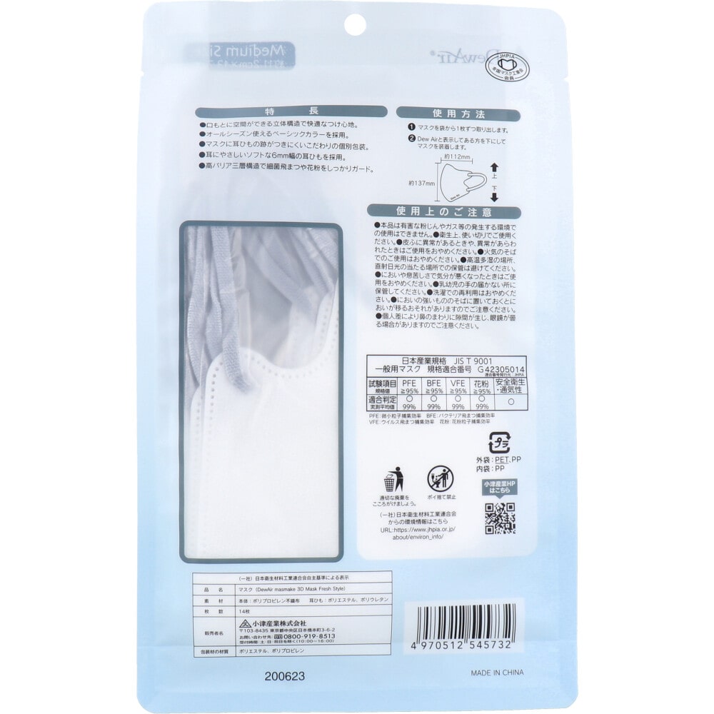 小津産業 デュウエアー masmake 3D Mask Fresh Style ミディアムサイズ フレッシュホワイト 14枚入 1袋(ご注文単位1袋)【直送品】