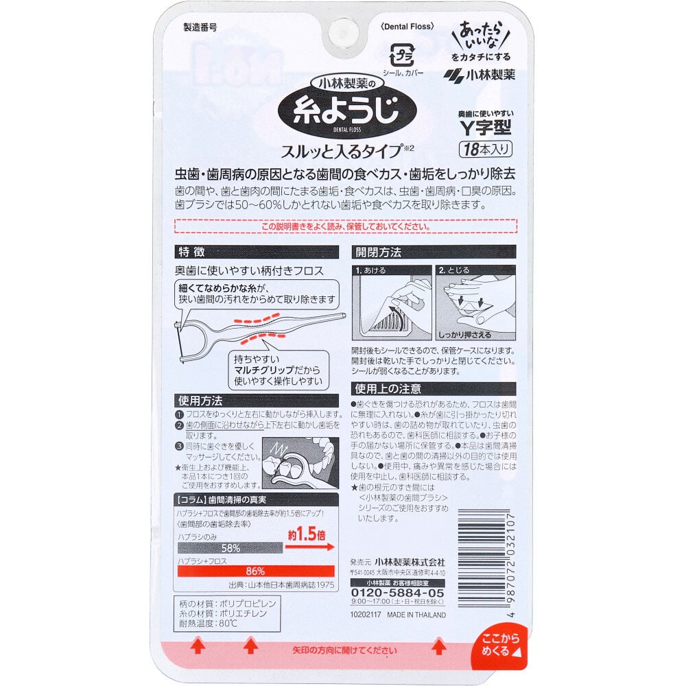 小林製薬 小林製薬の糸ようじ スルッと入るタイプ Y字型 18本入 1パック(ご注文単位1パック)【直送品】