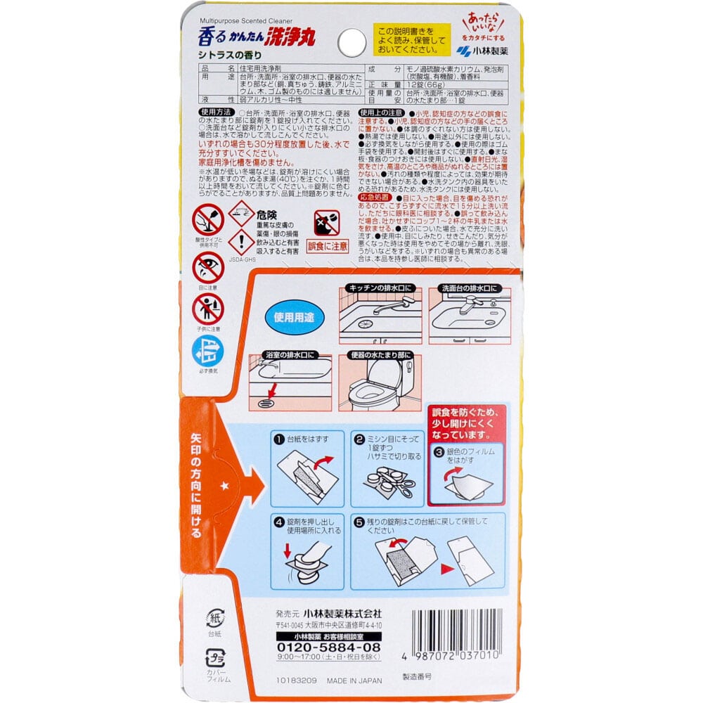 小林製薬 小林製薬の香るかんたん洗浄丸 シトラスの香り 12錠入 1パック(ご注文単位1パック)【直送品】