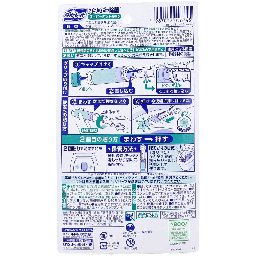 小林製薬 ブルーレットスタンピー 除菌 スーパーミントの香り 28g 1個(ご注文単位1個)【直送品】