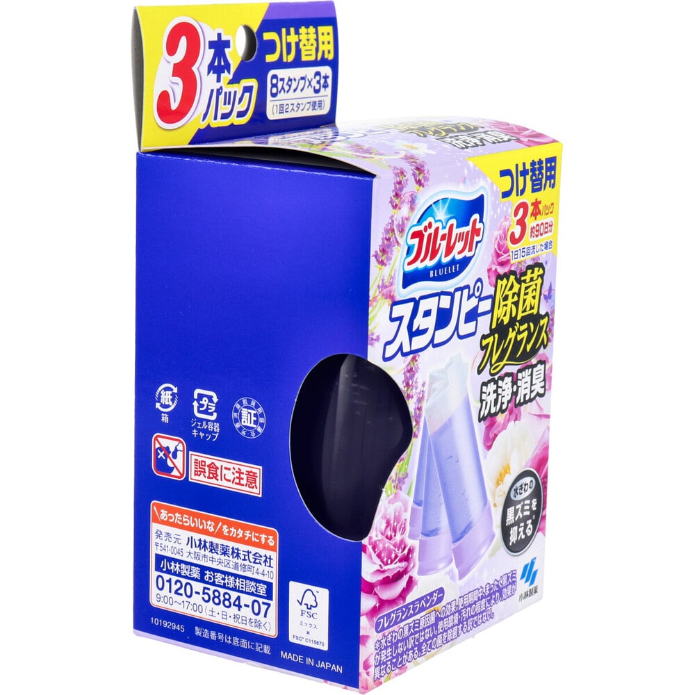 小林製薬 ブルーレットスタンピー 除菌フレグランス フレグランスラベンダー つけ替用3本パック 1箱(ご注文単位1箱)【直送品】