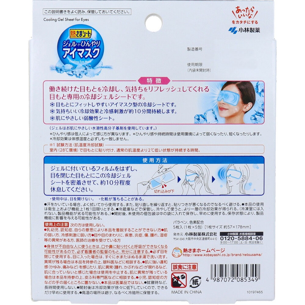 小林製薬 熱さまシート ジェルでひんやりアイマスク 5枚入 1パック(ご注文単位1パック)【直送品】