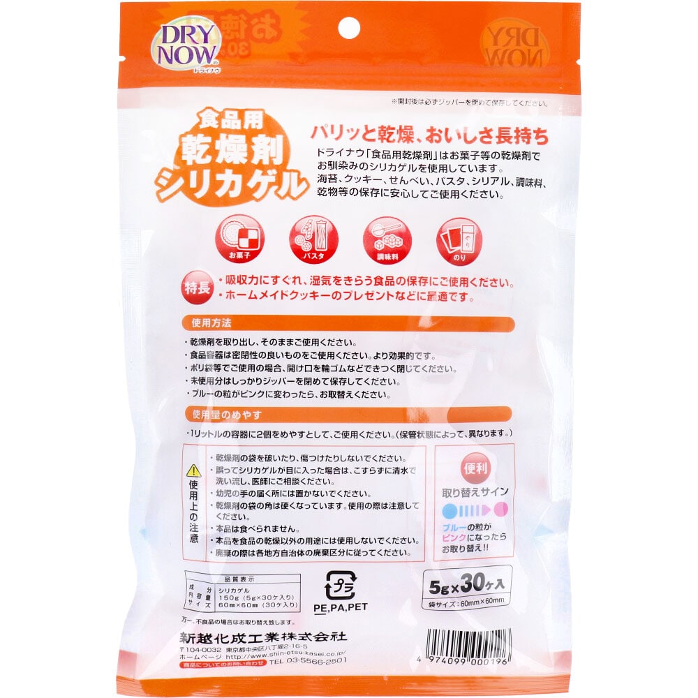 新越化成工業 ドライナウ 食品用乾燥剤 シリカゲル お徳用 5g×30ヶ入 1袋(ご注文単位1袋)【直送品】