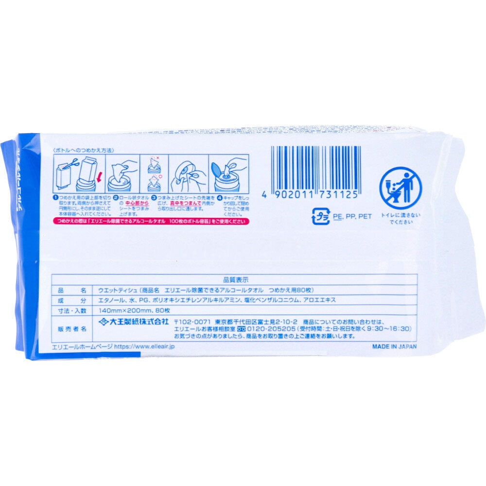 大王製紙 エリエール 除菌できるアルコールタオル アロエエキス入 つめかえ用 80枚入 1パック(ご注文単位1パック)【直送品】