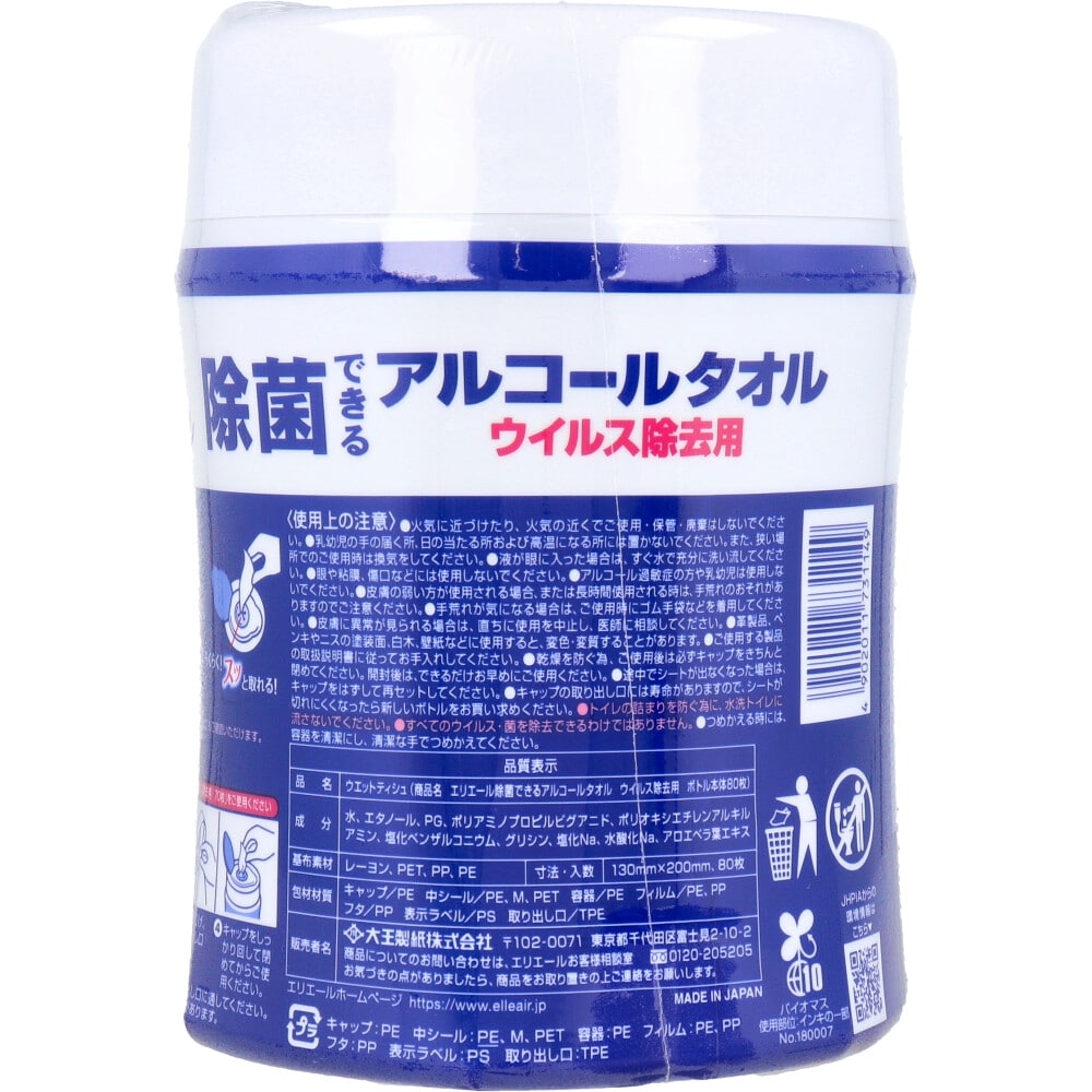 大王製紙 エリエール 除菌できるアルコールタオル ウイルス除去用 本体 80枚入 1パック(ご注文単位1パック)【直送品】