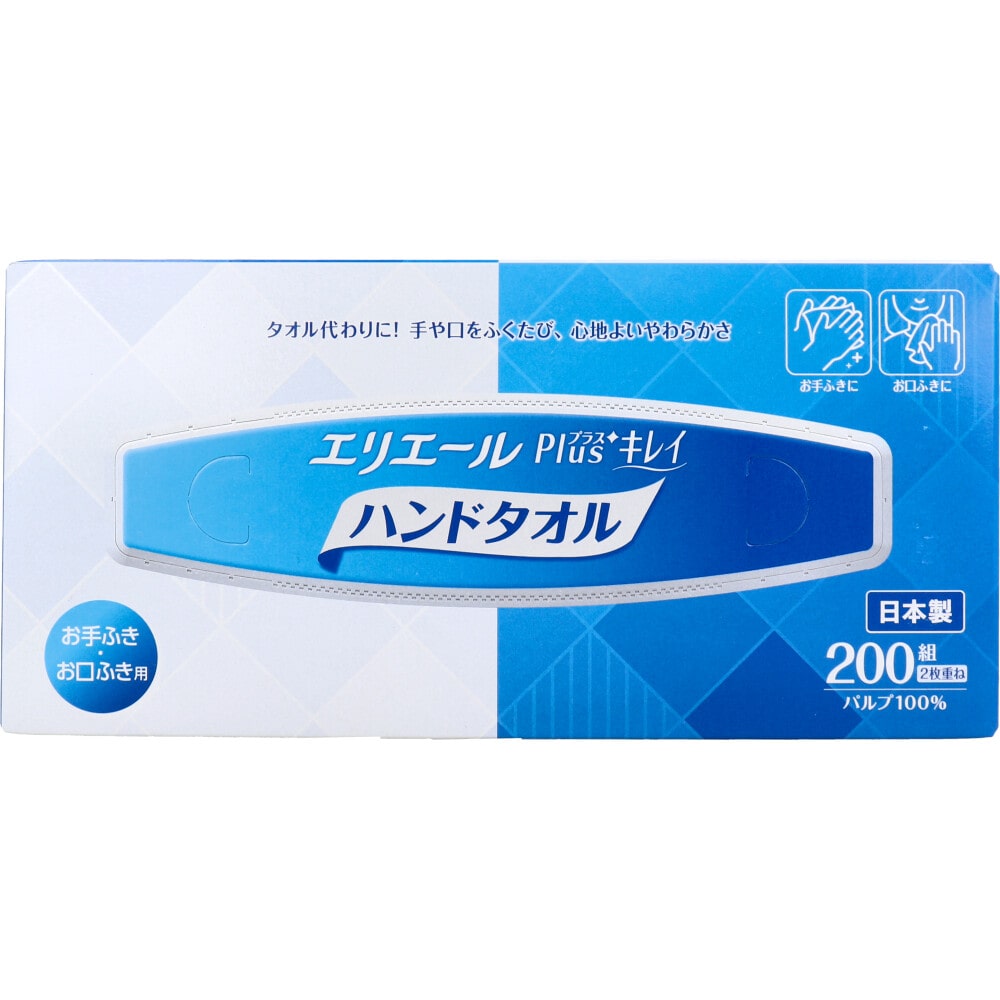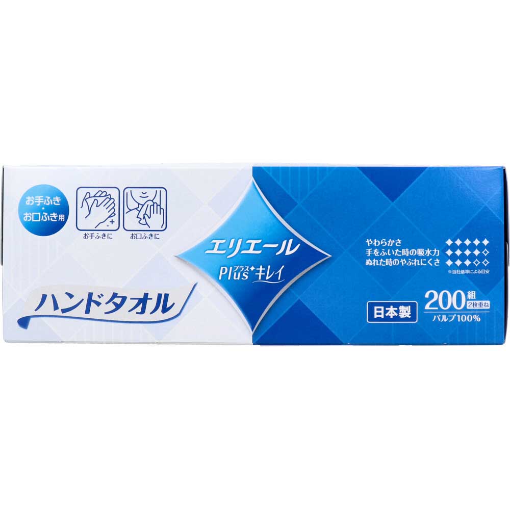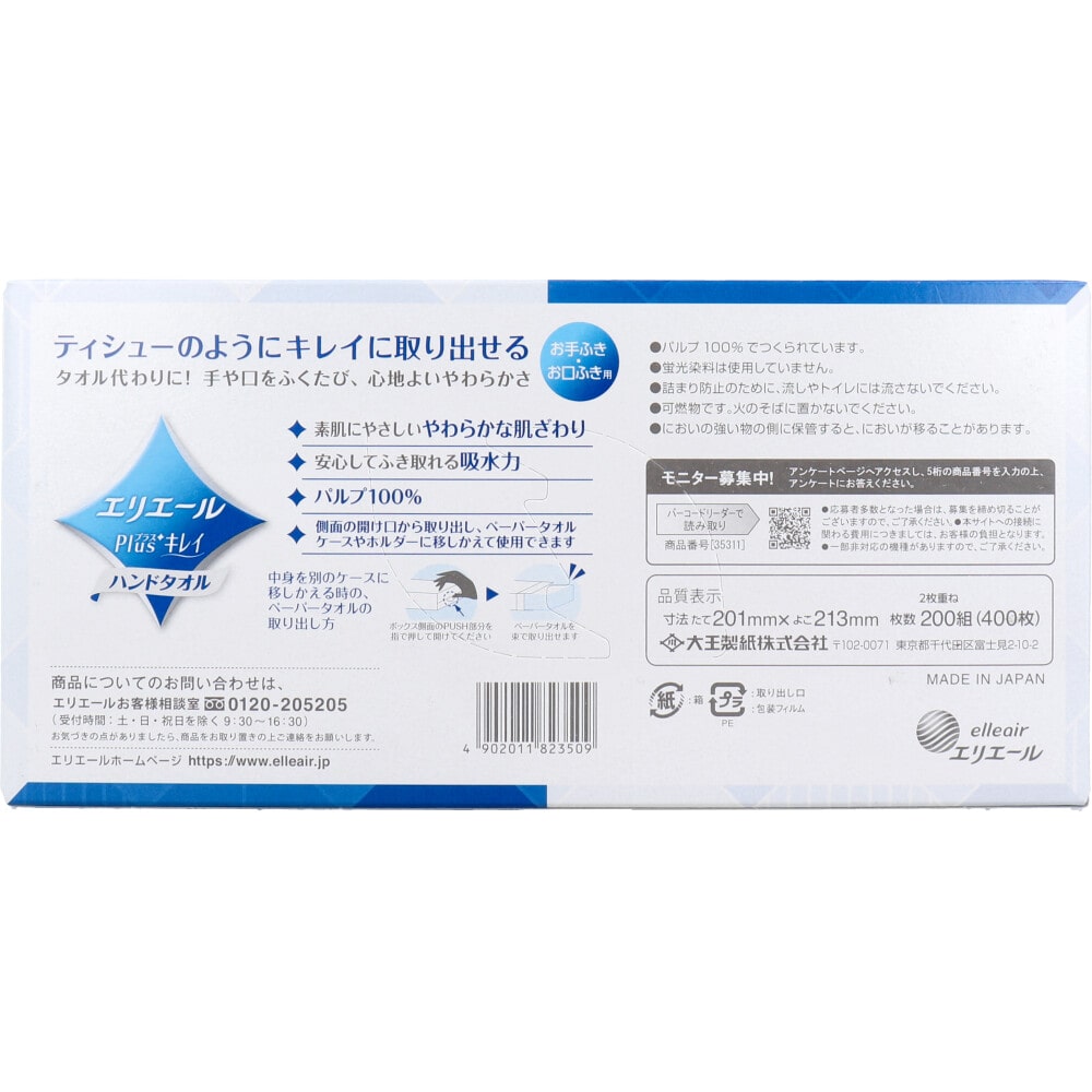 大王製紙 エリエールPlus+キレイ ペーパーハンドタオル ソフトタイプ ボックス 2枚重ね200組(400枚) 1パック(ご注文単位1パック)【直送品】