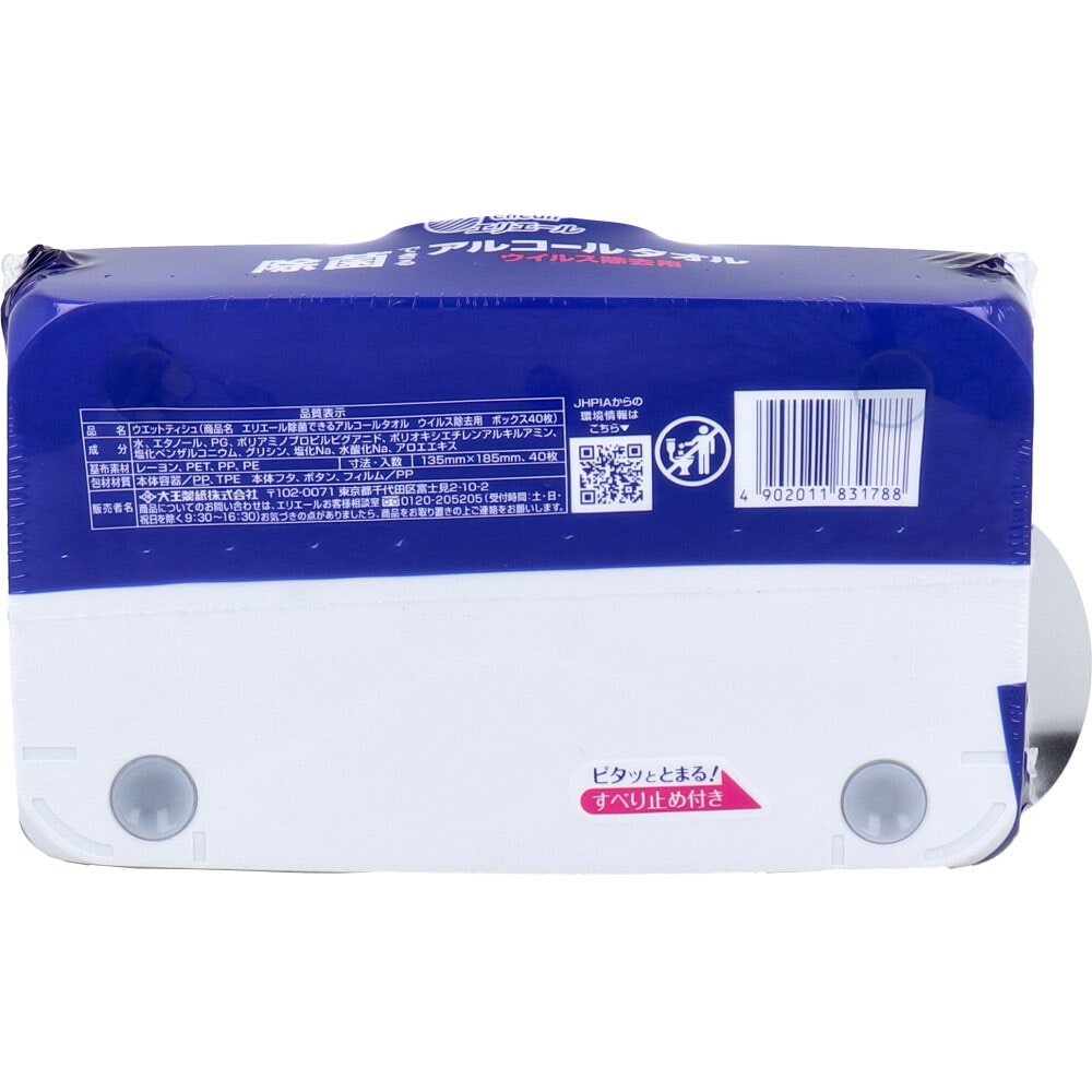 大王製紙 エリエール 除菌できるアルコールタオル ウイルス除去用 ボックスタイプ 本体 40枚入 1パック(ご注文単位1パック)【直送品】