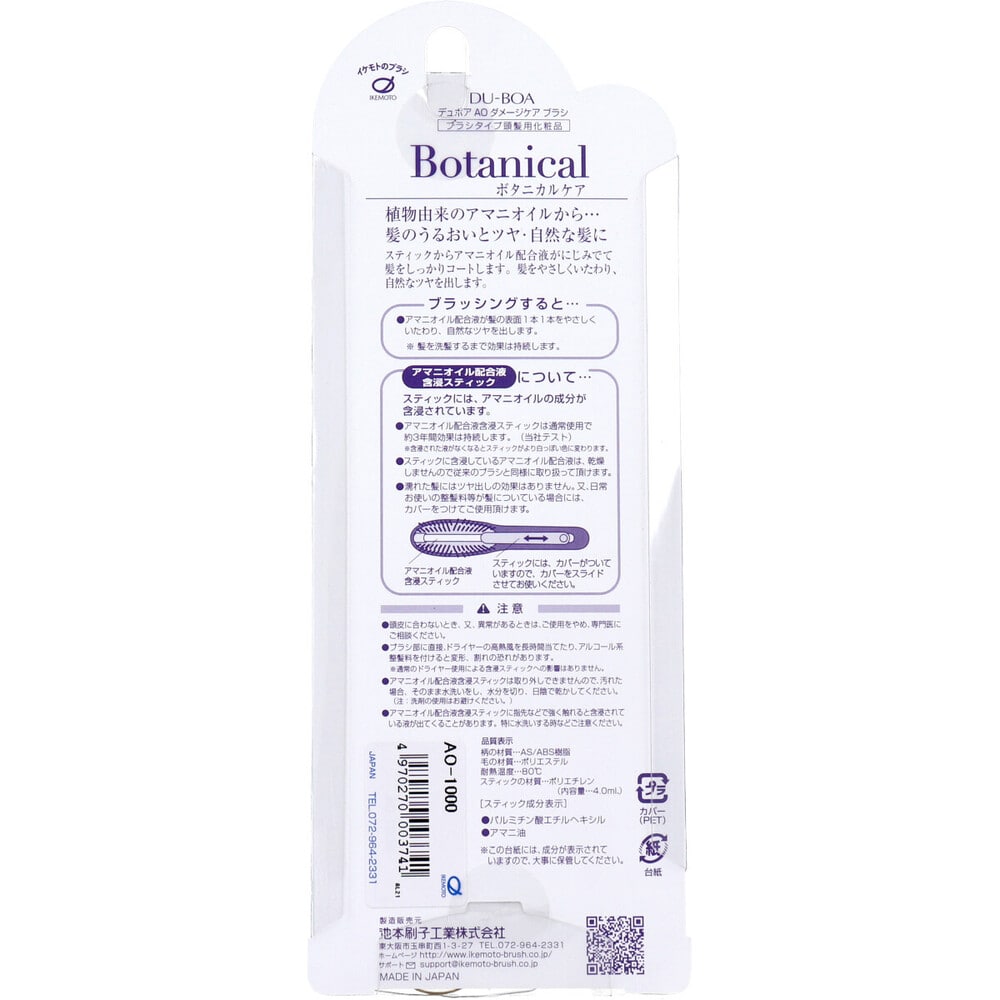 池本刷子工業 デュボア アマニオイル ボタニカルケア ダメージケアブラシ AO-1000 1本(ご注文単位1本)【直送品】