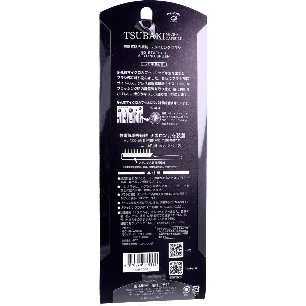 池本刷子工業 ツバキ油配合 静電気除去機能 スタイリングブラシ TSB-1000 1本(ご注文単位1本)【直送品】