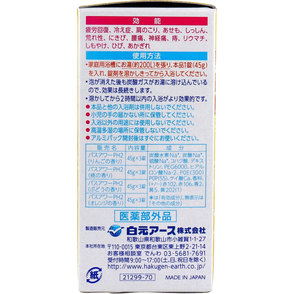 白元アース HERSバスラボ 薬用入浴剤 4種のとれたてフルーツ 45g×12錠入 1パック(ご注文単位1パック)【直送品】