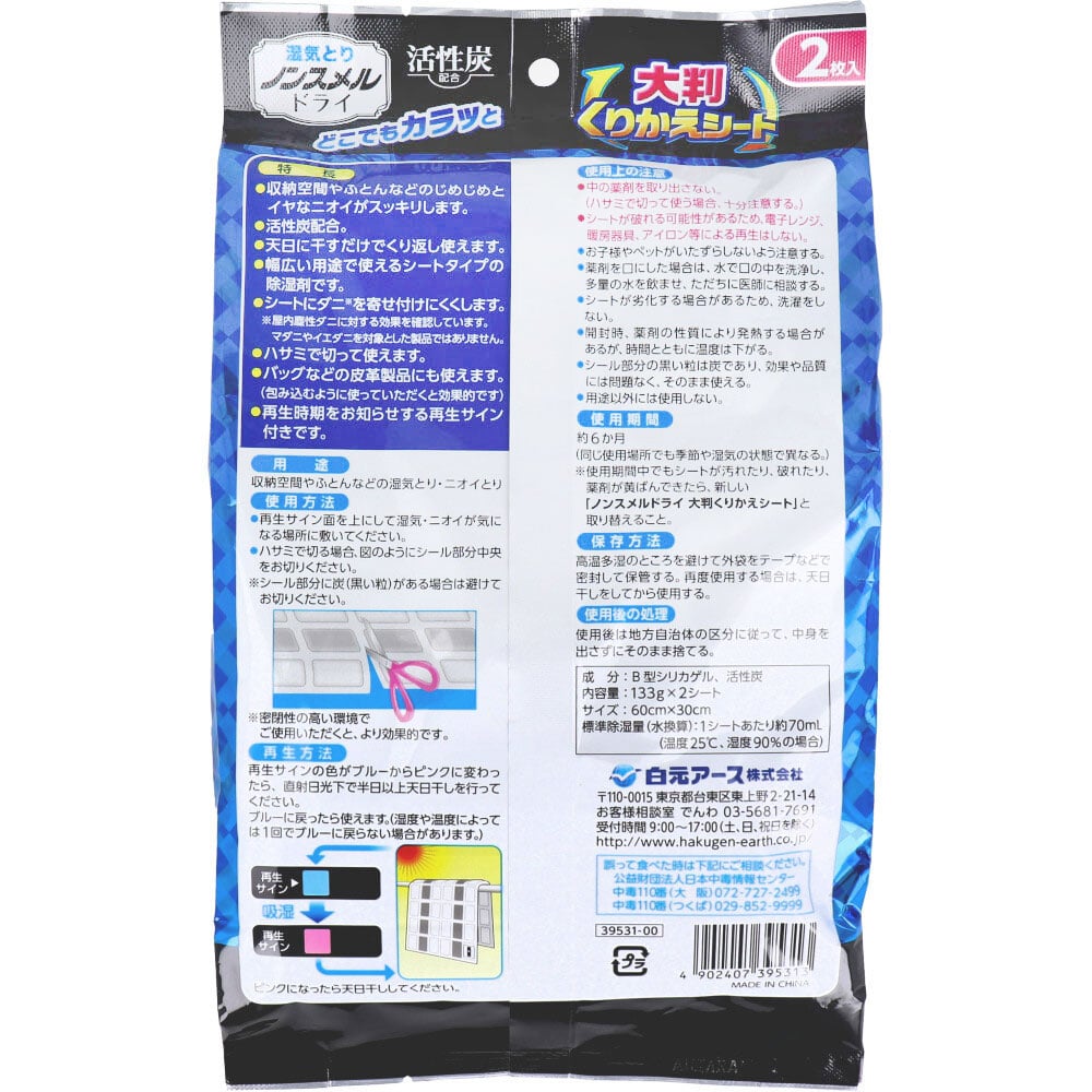 白元アース 湿気とり ノンスメルドライ 大判くりかえシート 2枚入 1パック(ご注文単位1パック)【直送品】