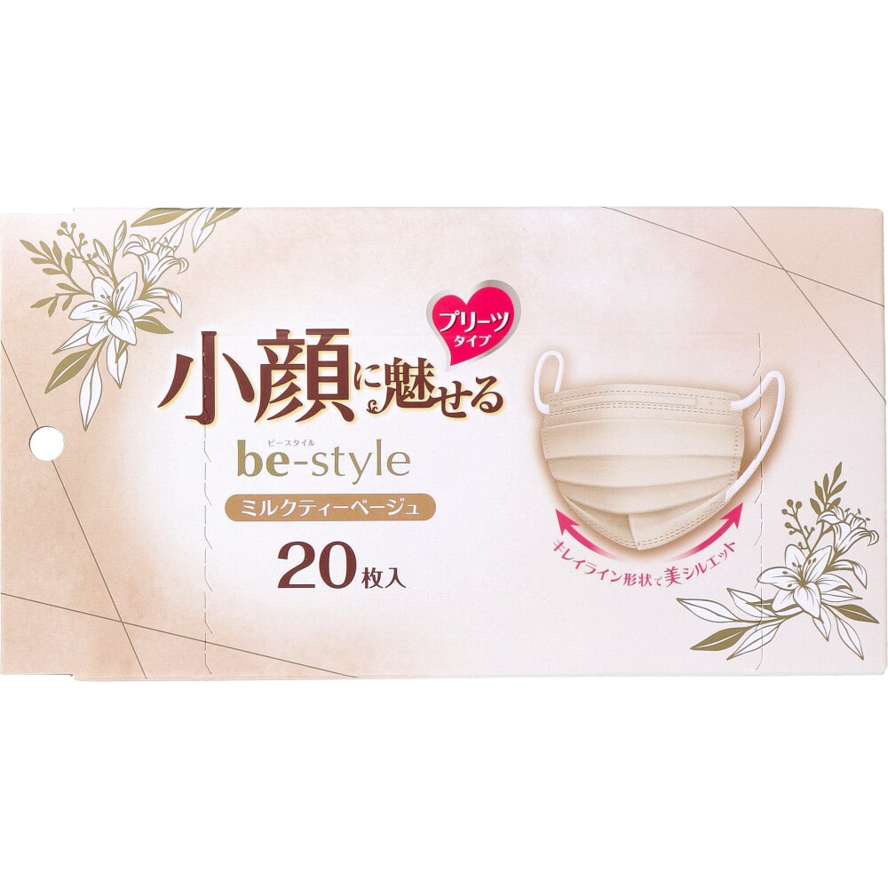 白元アース ビースタイル 小顔に魅せる プリーツタイプ ふつうサイズ ミルクティーベージュ 20枚入 1箱(ご注文単位1箱)【直送品】