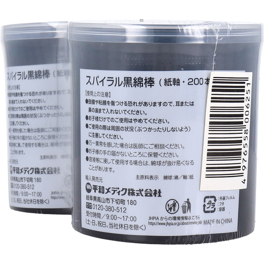 平和メディク スパイラル黒綿棒 紙軸 200本入×2個パック 1パック(ご注文単位1パック)【直送品】