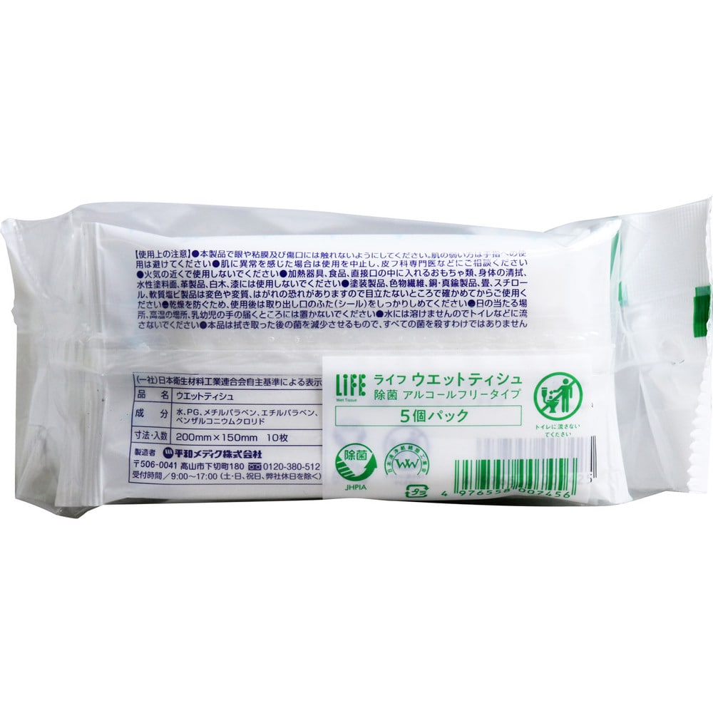 平和メディク ライフ 除菌ウエットティシュ アルコールフリータイプ 10枚入×5個 1パック(ご注文単位1パック)【直送品】