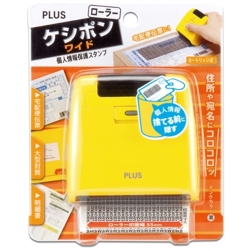 プラス PLUS 個人情報保護スタンプ ローラーケシポンワイド イエロー IS-510CM 38-134 1個(ご注文単位1個)【直送品】