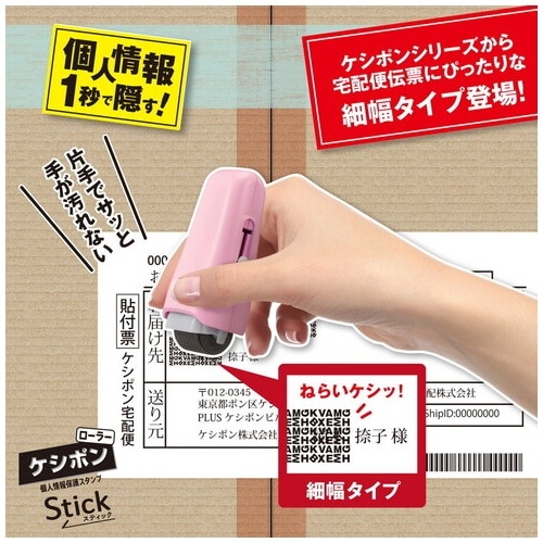 プラス PLUS 個人情報保護スタンプ ローラーケシポン スティック サクラピンク 39-146 1個(ご注文単位1個)【直送品】