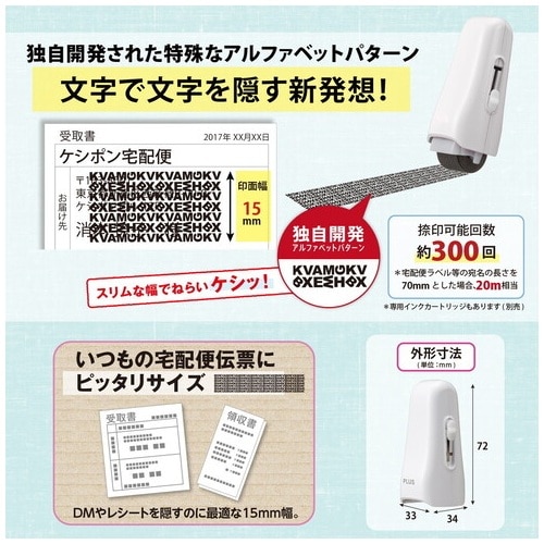 プラス PLUS 個人情報保護スタンプ ローラーケシポン スティック ホワイト 39-151 1個(ご注文単位1個)【直送品】